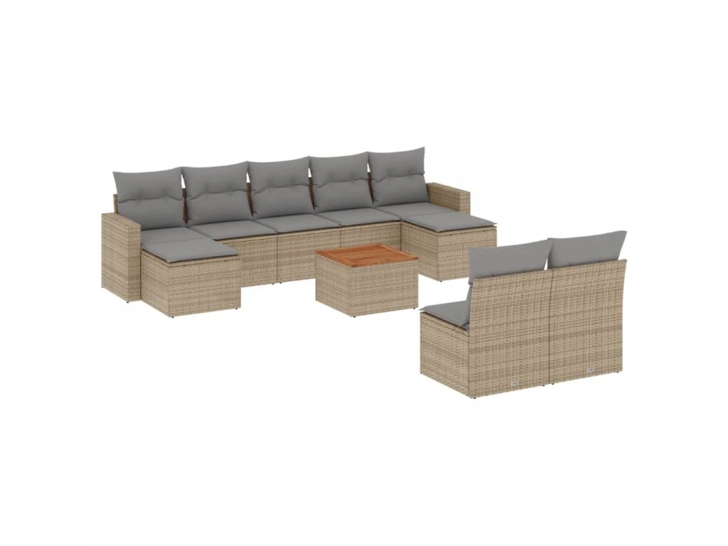 10dílná zahradní sedací souprava a podušky mix béžové polyratan 3256654