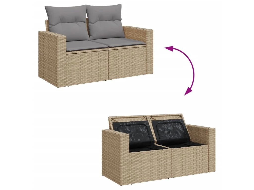 - Úložný prostor s voděodolným vakem: Každý zahradní sedací díl má úložný prostor pod sedákem, který je opatřen voděodolnou vložkou a poslouží vám k ukládání podušek, hraček a dalších věcí. Vnitřní vaky mají horní kryt a lze je bezpečně připevnit k sedákům pomocí suchého zipu, což zaručí větší stabilitu.