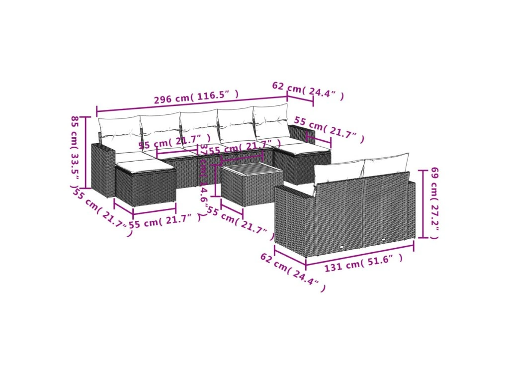 Tato zahradní sedací souprava je dokonalým doplňkem vaší zahrady, terasy nebo dvorku a poskytne vám pohodlné a příjemné místo, kde si můžete povídat s rodinou a přáteli nebo jen tak odpočívat a užívat si pobyt venku.