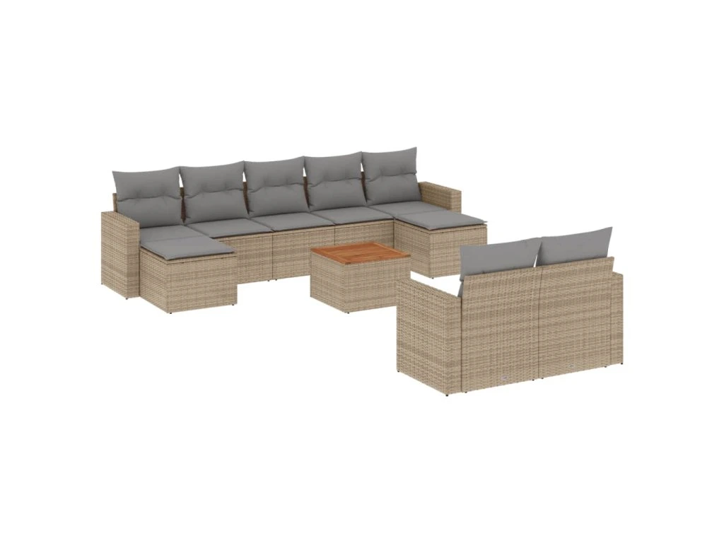 10dílná zahradní sedací souprava a podušky mix béžové polyratan 3256668