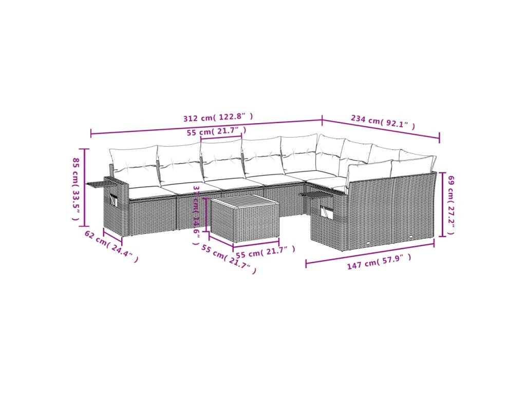 Tato zahradní sedací souprava je dokonalým doplňkem vaší zahrady, terasy nebo dvorku a poskytne vám pohodlné a příjemné místo, kde si můžete povídat s rodinou a přáteli nebo jen tak odpočívat a užívat si pobyt venku.