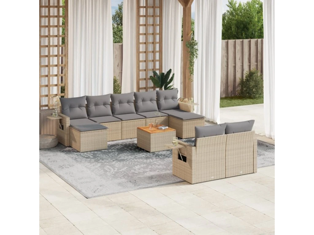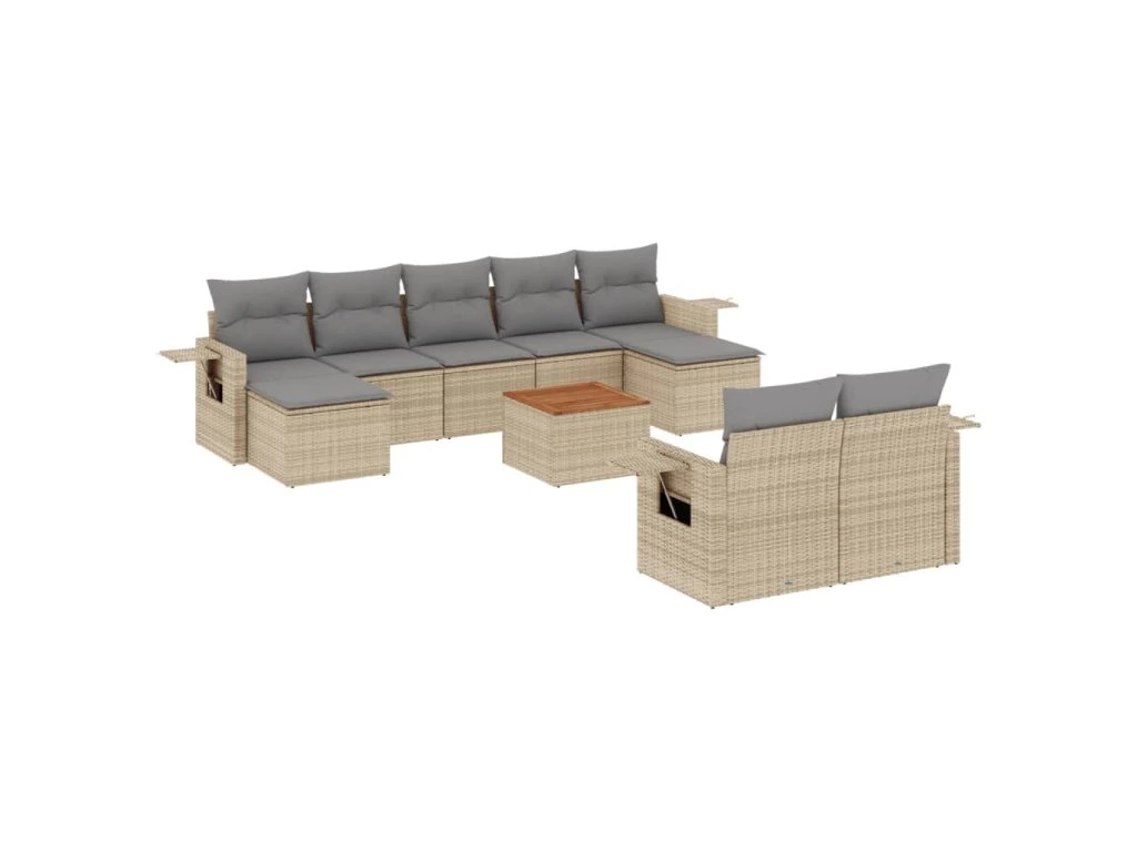 10dílná zahradní sedací souprava a podušky mix béžové polyratan 3257109