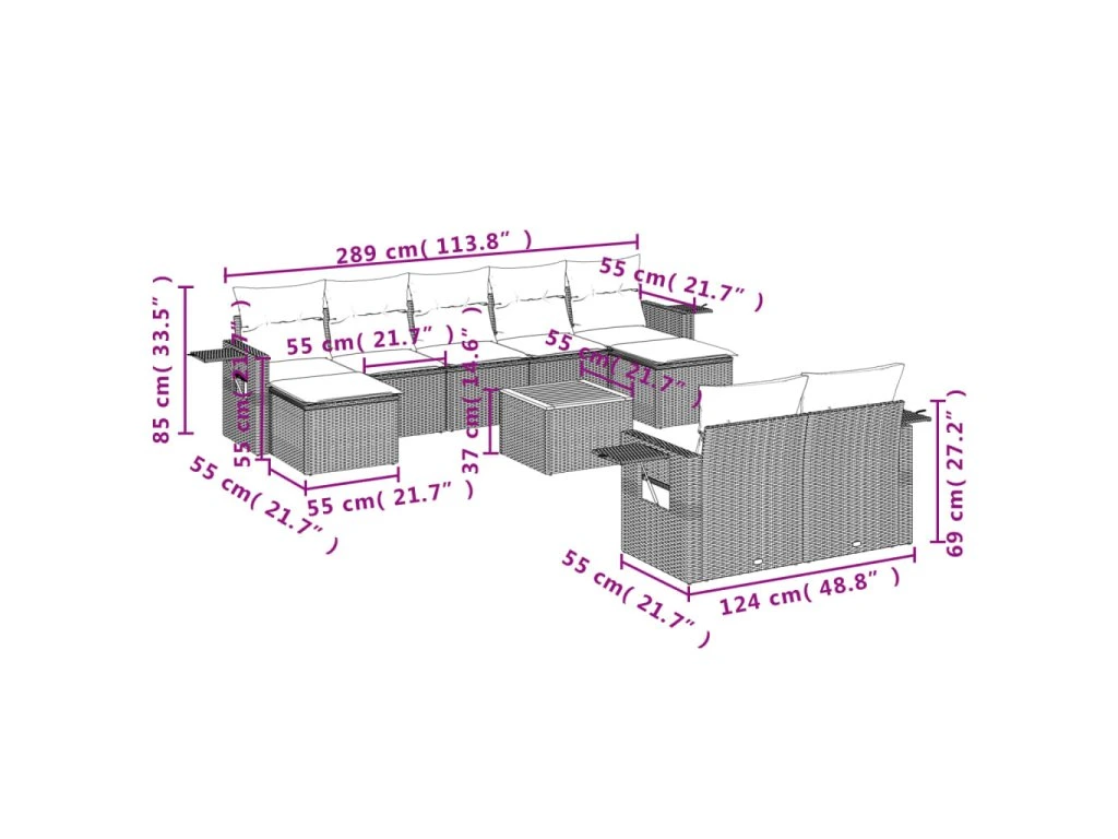 Tato zahradní sedací souprava je dokonalým doplňkem vaší zahrady, terasy nebo dvorku a poskytne vám pohodlné a příjemné místo, kde si můžete povídat s rodinou a přáteli nebo jen tak odpočívat a užívat si pobyt venku.
