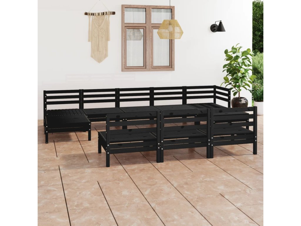 10dílná zahradní sedací souprava černá masivní borovice 3083368