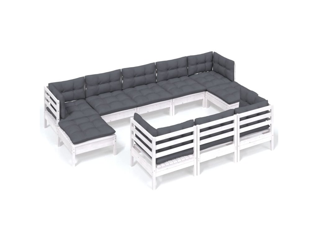 10dílná zahradní sedací souprava podušky bílá masivní borovice 3097140