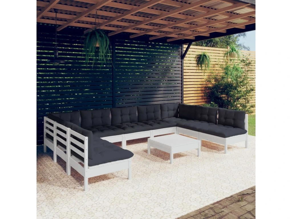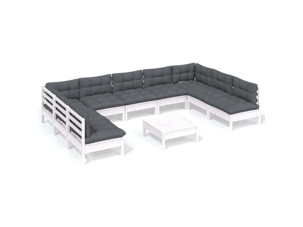 10dílná zahradní sedací souprava podušky bílá masivní borovice 3097182