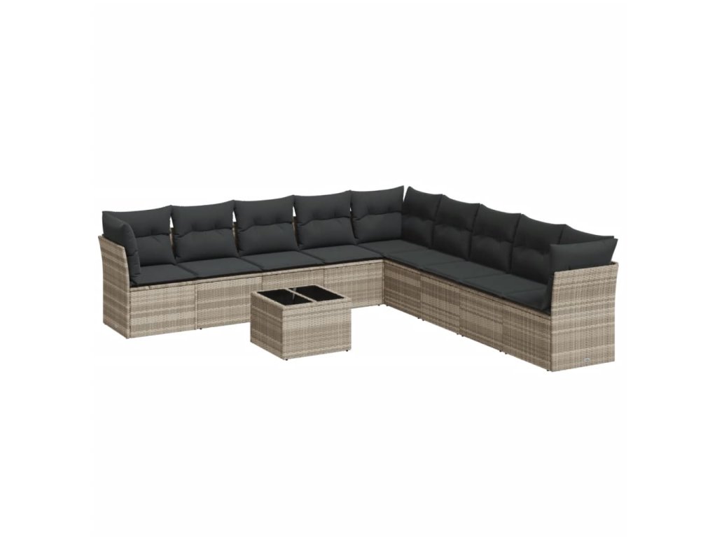 10dílná zahradní sedací souprava podušky světle šedá polyratan 3217792