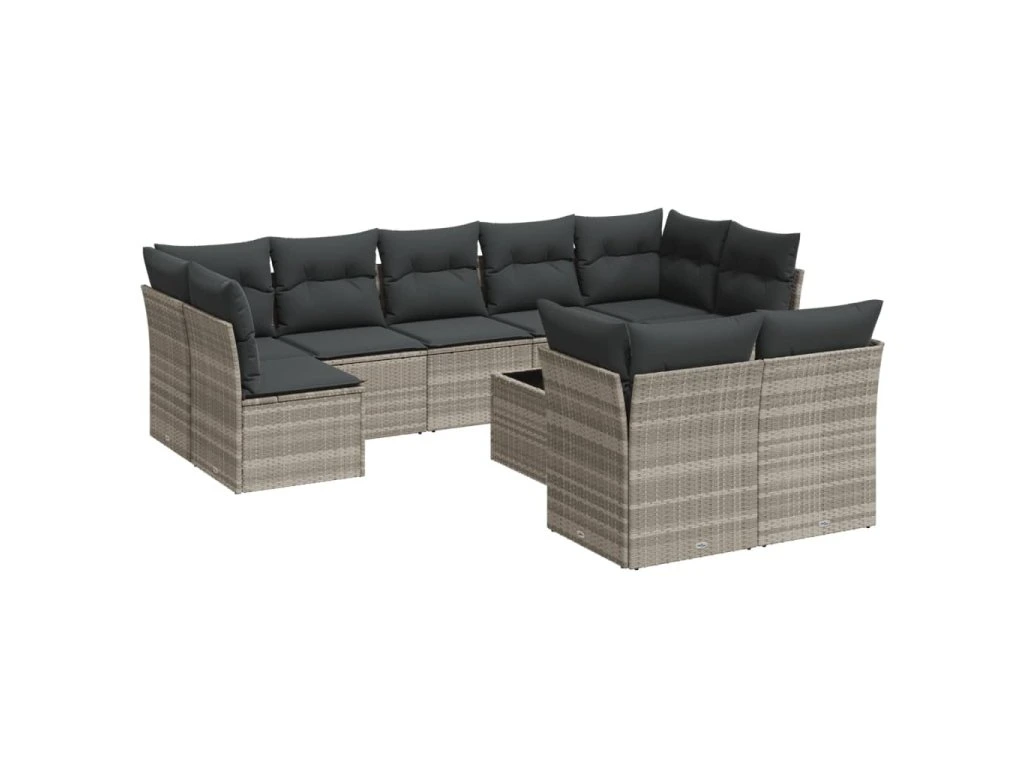 10dílná zahradní sedací souprava podušky světle šedá polyratan 3218162
