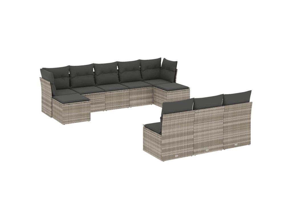 10dílná zahradní sedací souprava podušky světle šedá polyratan 3218292
