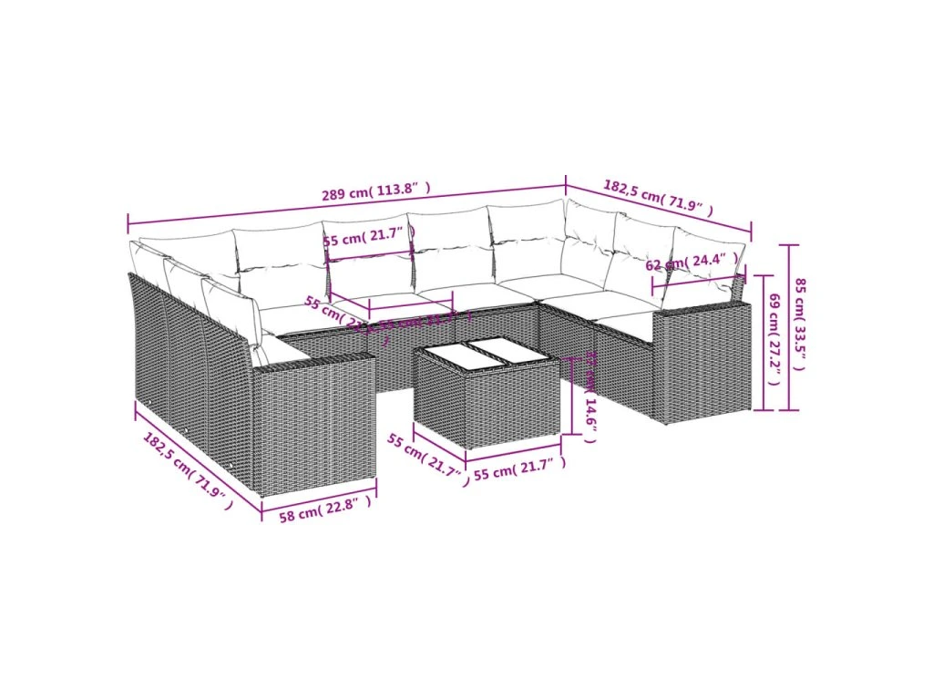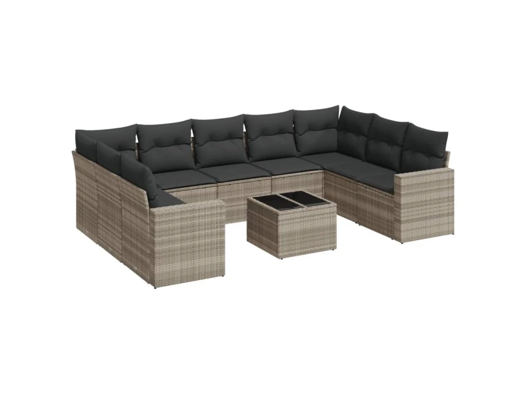 10dílná zahradní sedací souprava podušky světle šedá polyratan 3219402