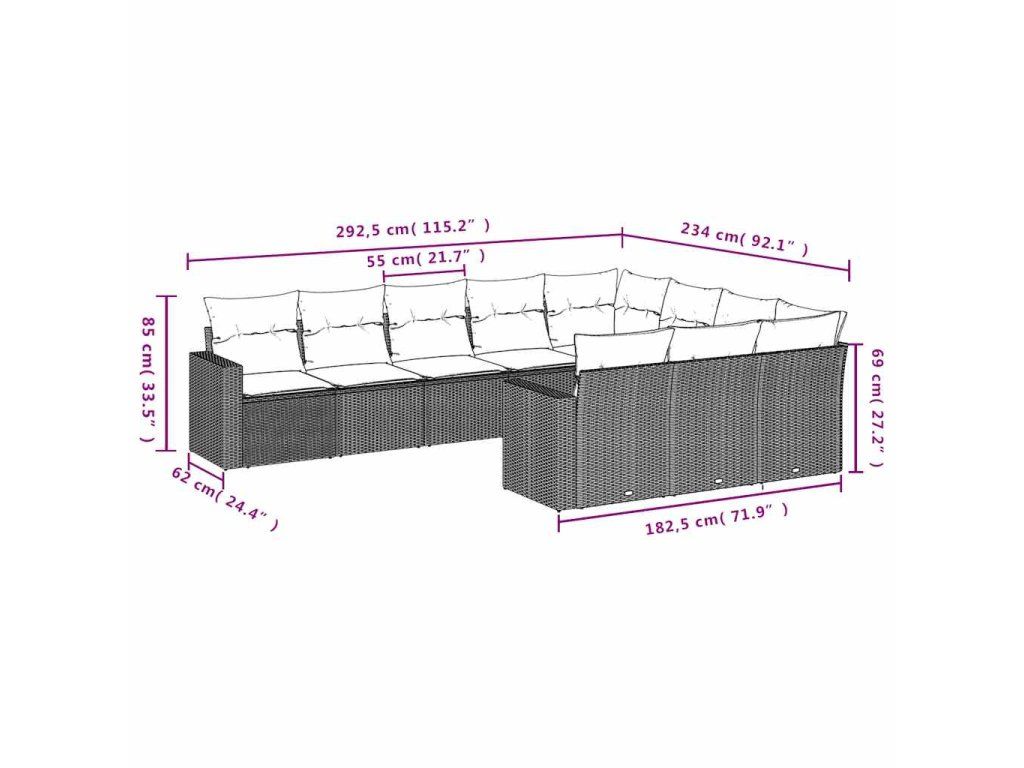 10dílná zahradní sedací souprava podušky světle šedá polyratan 3219482