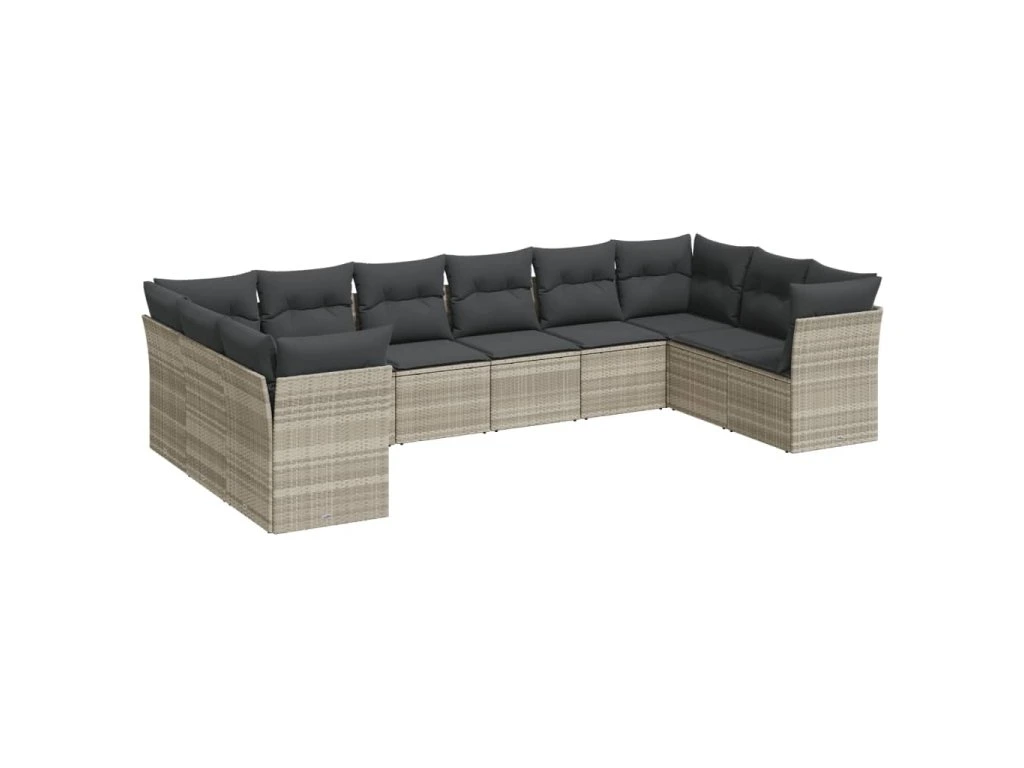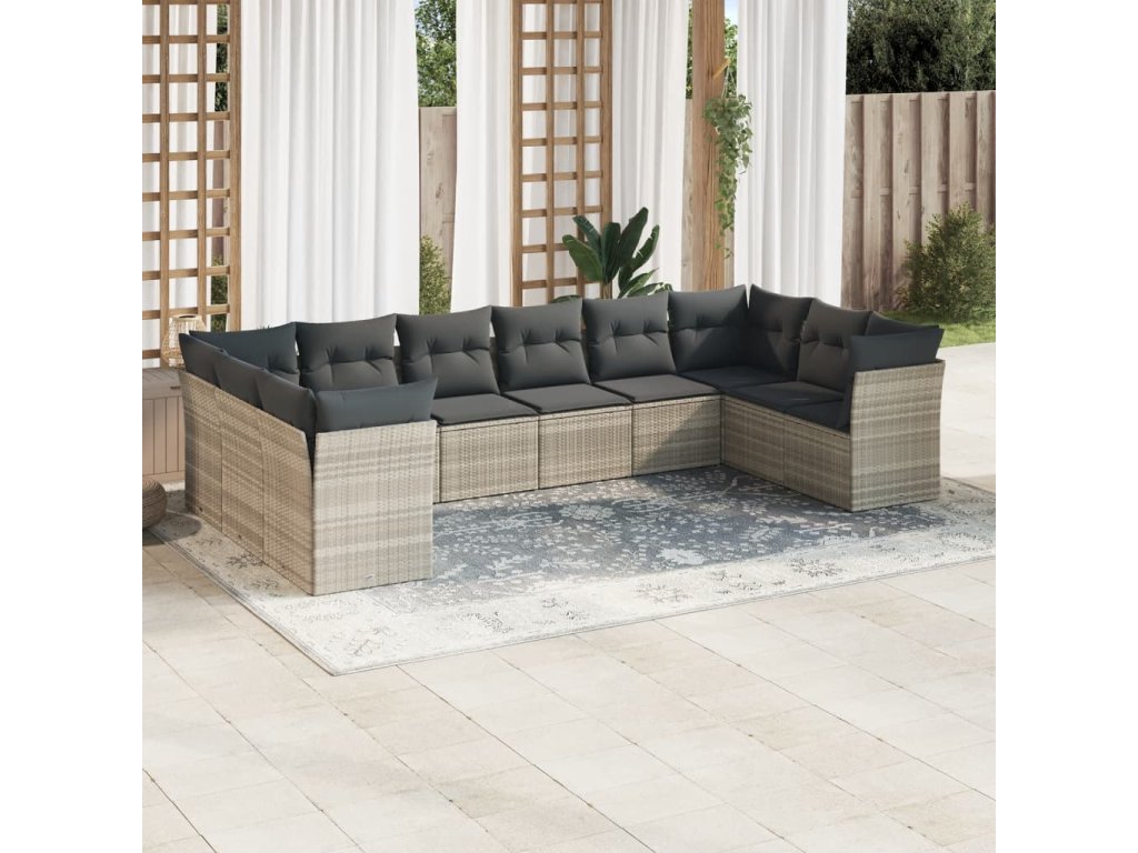 10dílná zahradní sedací souprava podušky světle šedá polyratan 3250041