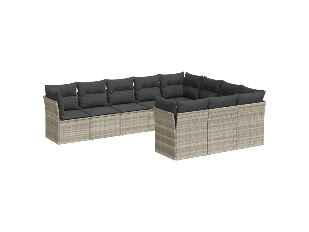 10dílná zahradní sedací souprava podušky světle šedá polyratan 3250061