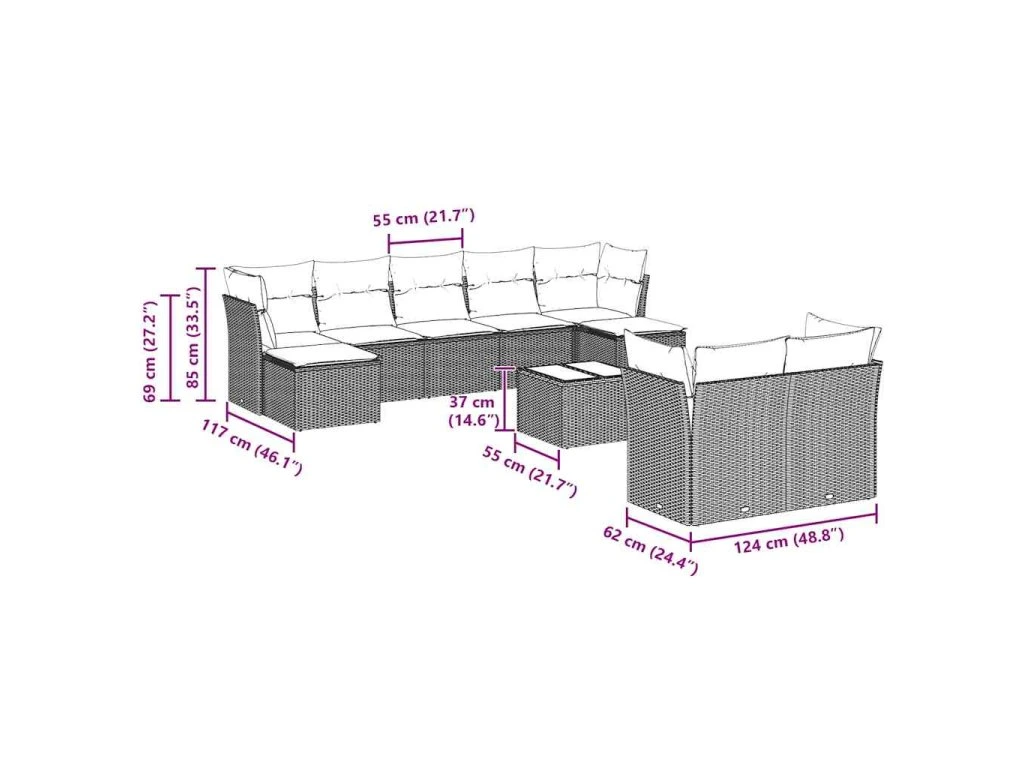 10dílná zahradní sedací souprava podušky světle šedá polyratan 3250161