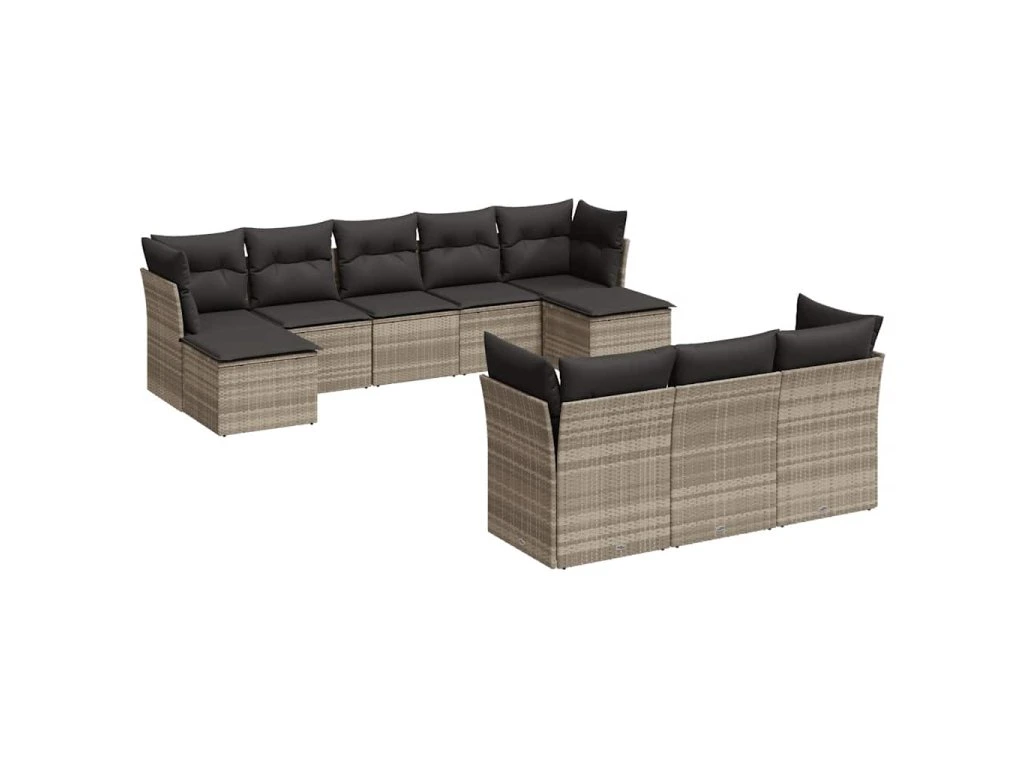 10dílná zahradní sedací souprava podušky světle šedá polyratan 3250171