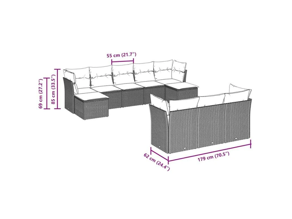 Tato zahradní sedací souprava je dokonalým doplňkem vaší zahrady, terasy nebo dvorku a poskytne vám pohodlné a příjemné místo, kde si můžete povídat s rodinou a přáteli nebo jen tak odpočívat a užívat si pobyt venku.