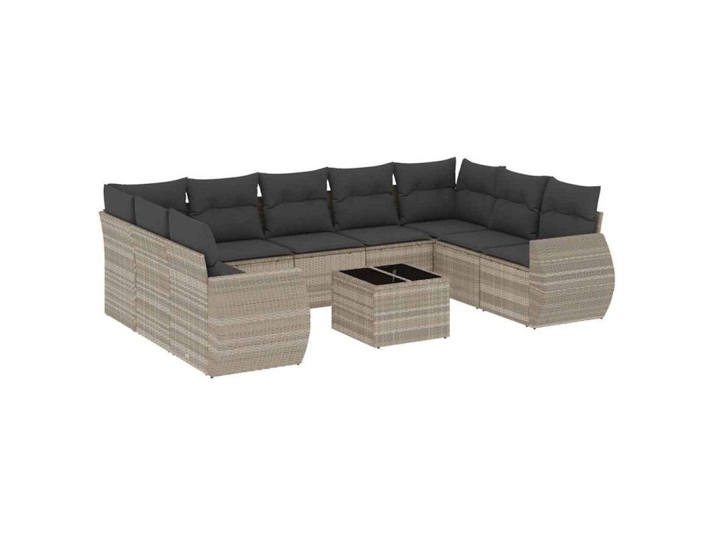 10dílná zahradní sedací souprava podušky světle šedá polyratan 3254149