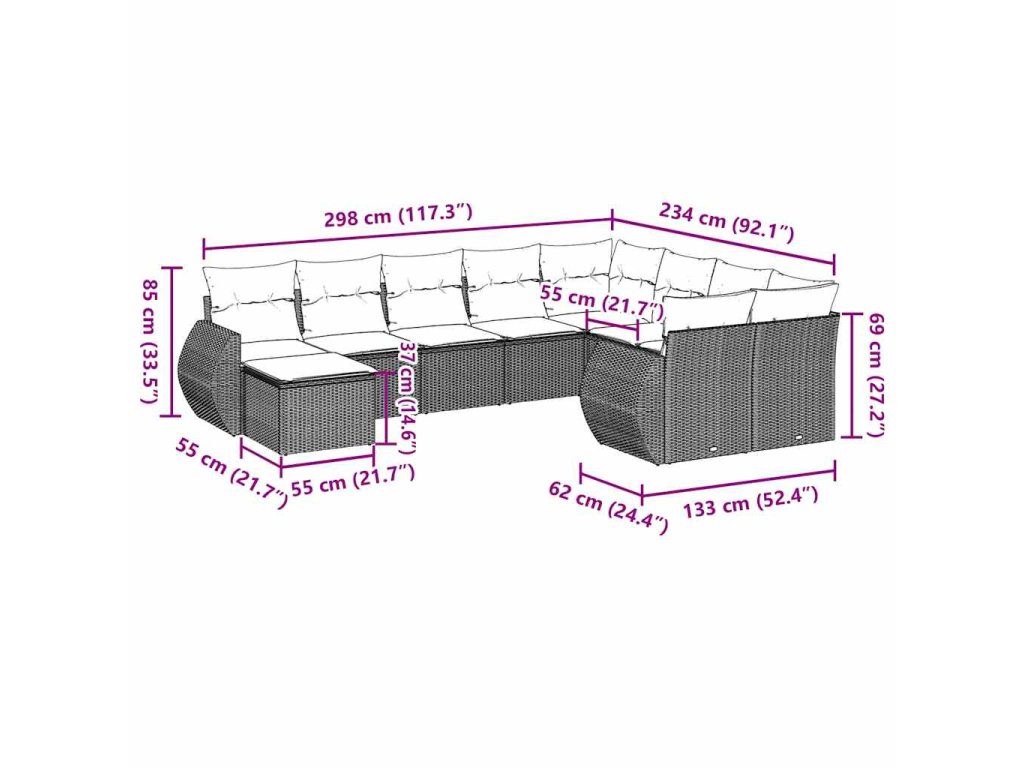 Tato zahradní sedací souprava je dokonalým doplňkem vaší zahrady, terasy nebo dvorku a poskytne vám pohodlné a příjemné místo, kde si můžete povídat s rodinou a přáteli nebo jen tak odpočívat a užívat si pobyt venku.