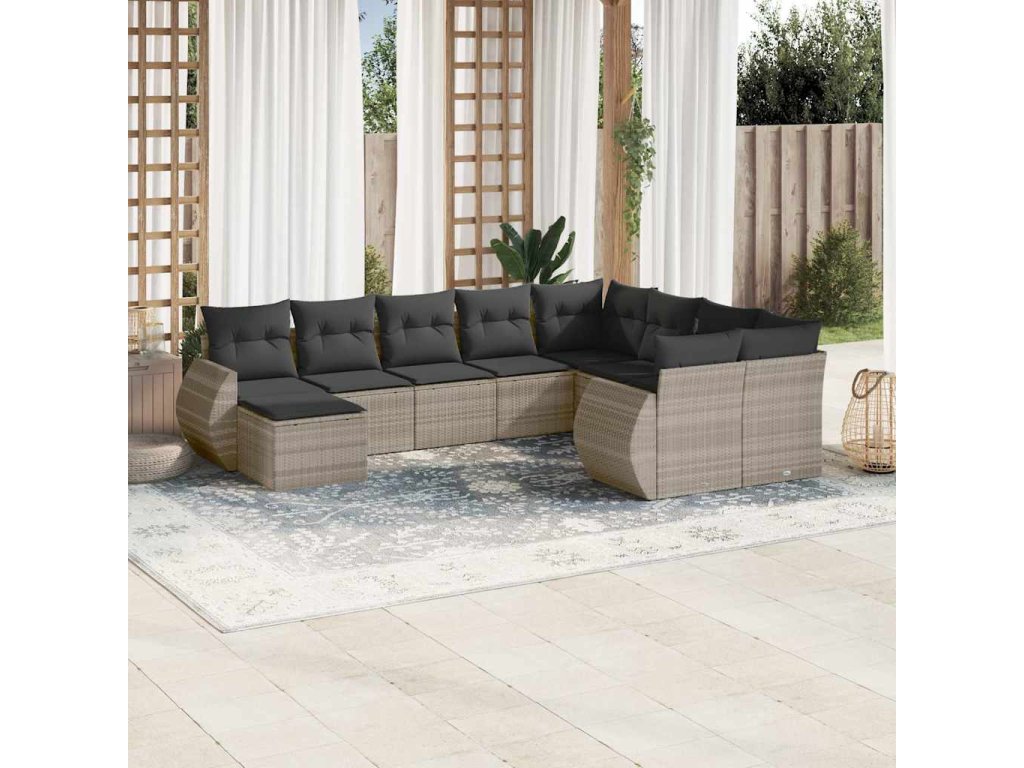 10dílná zahradní sedací souprava podušky světle šedá polyratan 3254199