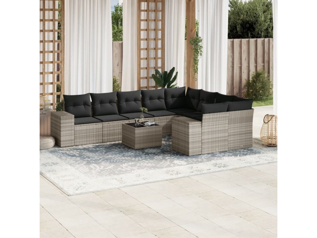10dílná zahradní sedací souprava podušky světle šedá polyratan 3255389