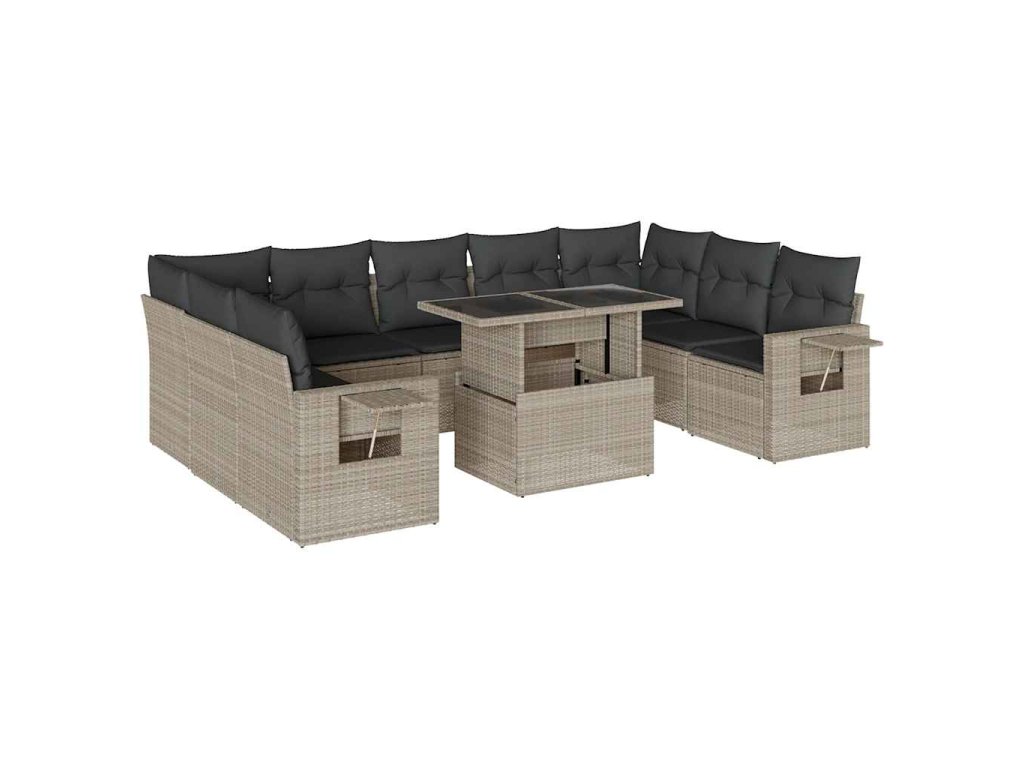 10dílná zahradní sedací souprava podušky světle šedá polyratan 3268112