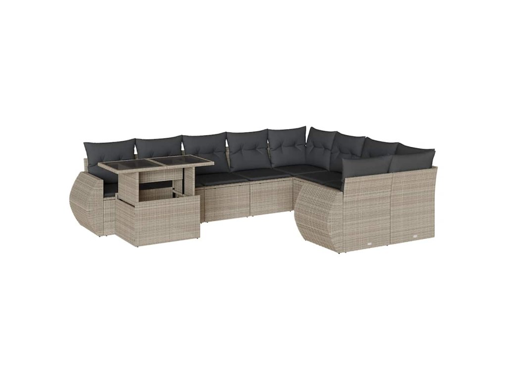 10dílná zahradní sedací souprava podušky světle šedá polyratan 3268772