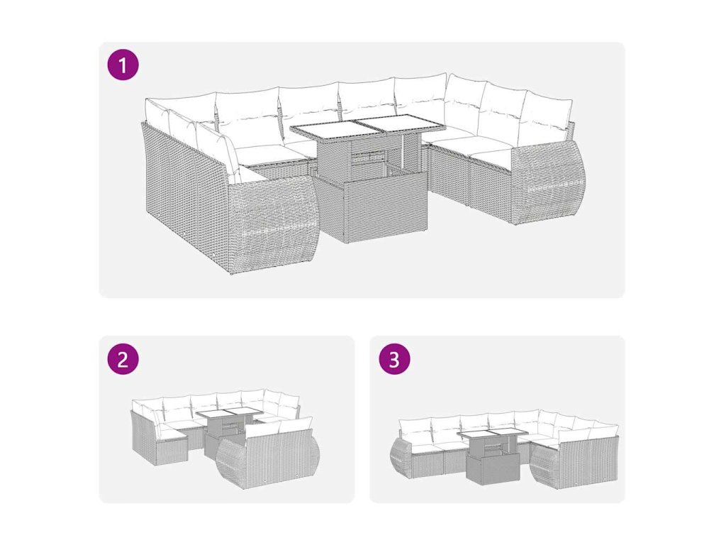 - Modulární design: Tato sada venkovního nábytku se vyznačuje modulární konstrukcí, je tedy zcela flexibilní a lze ji snadno přemisťovat, takže si můžete uspořádat venkovní nábytek dle vašich potřeb.