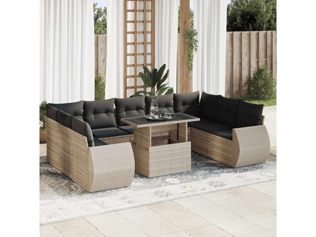 10dílná zahradní sedací souprava podušky světle šedá polyratan 3326703