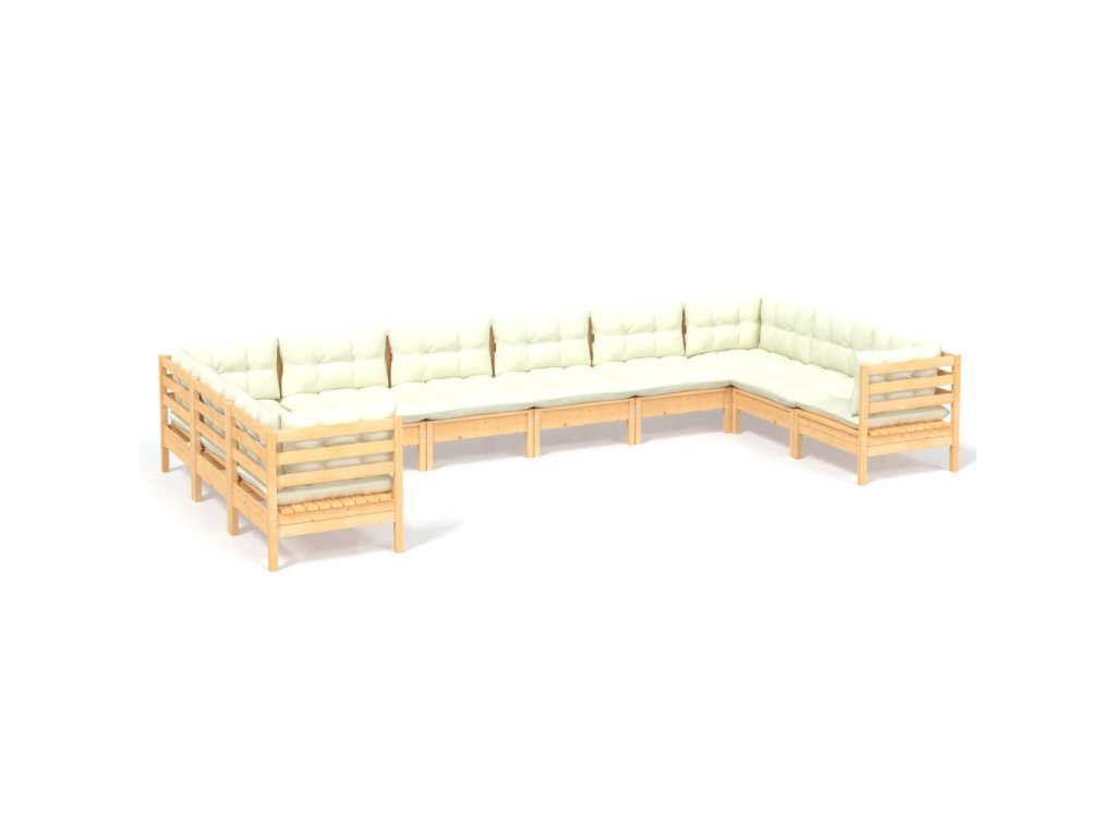 10dílná zahradní sedací souprava s krémovými poduškami borovice 3097331
