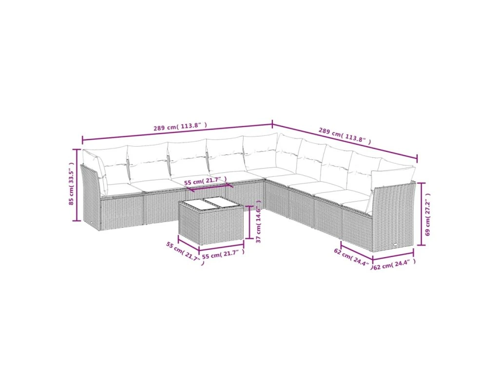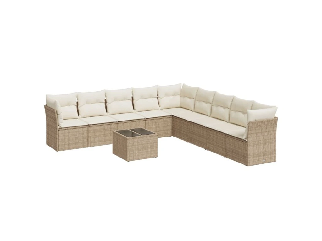 10dílná zahradní sedací souprava s poduškami béžová polyratan 3217788