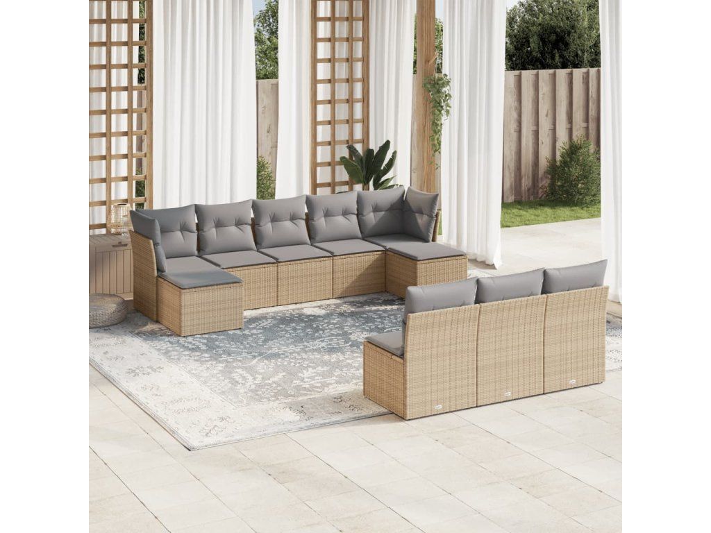 10dílná zahradní sedací souprava s poduškami béžová polyratan 3218289