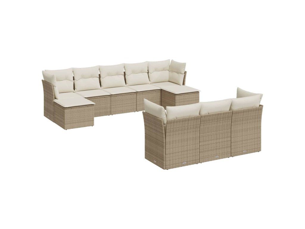 10dílná zahradní sedací souprava s poduškami béžová polyratan 3218328