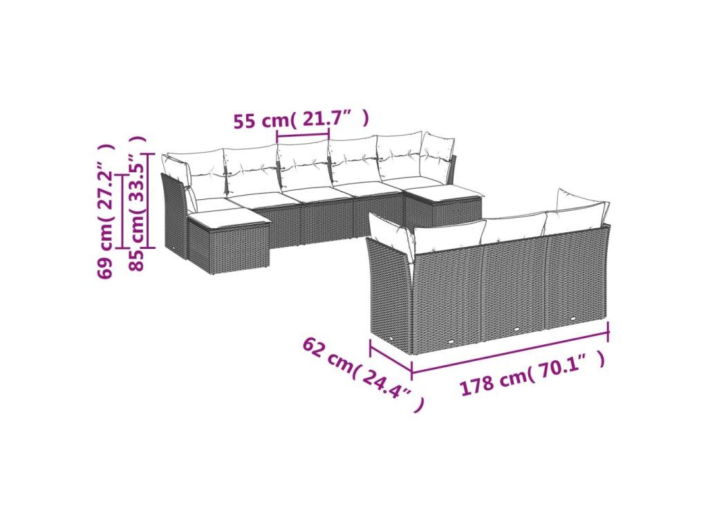 Tato zahradní sedací souprava je dokonalým doplňkem vaší zahrady, terasy nebo dvorku a poskytne vám pohodlné a příjemné místo, kde si můžete povídat s rodinou a přáteli nebo jen tak odpočívat a užívat si pobyt venku.