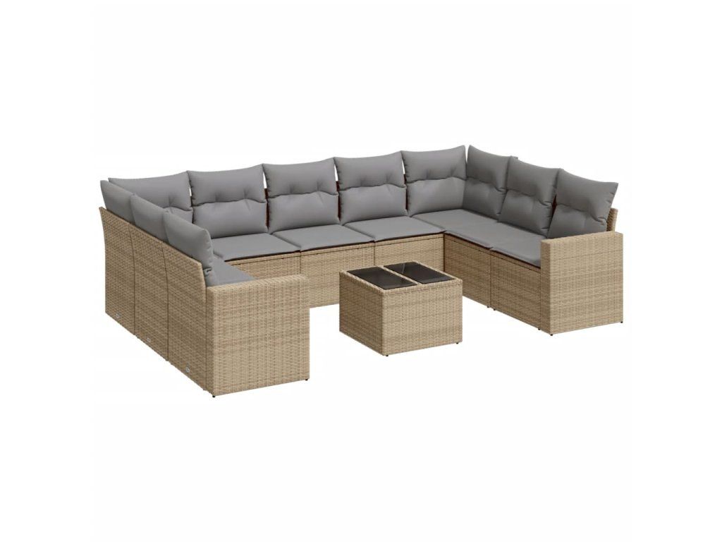 10dílná zahradní sedací souprava s poduškami béžová polyratan 3219399