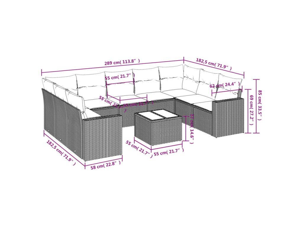 Tato zahradní sedací souprava je dokonalým doplňkem vaší zahrady, terasy nebo dvorku a poskytne vám pohodlné a příjemné místo, kde si můžete povídat s rodinou a přáteli nebo jen tak odpočívat a užívat si pobyt venku.