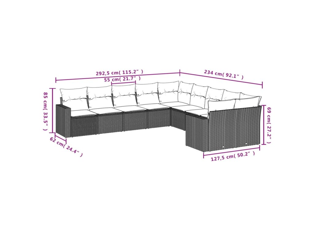 Tato zahradní sedací souprava je dokonalým doplňkem vaší zahrady, terasy nebo dvorku a poskytne vám pohodlné a příjemné místo, kde si můžete povídat s rodinou a přáteli nebo jen tak odpočívat a užívat si pobyt venku.