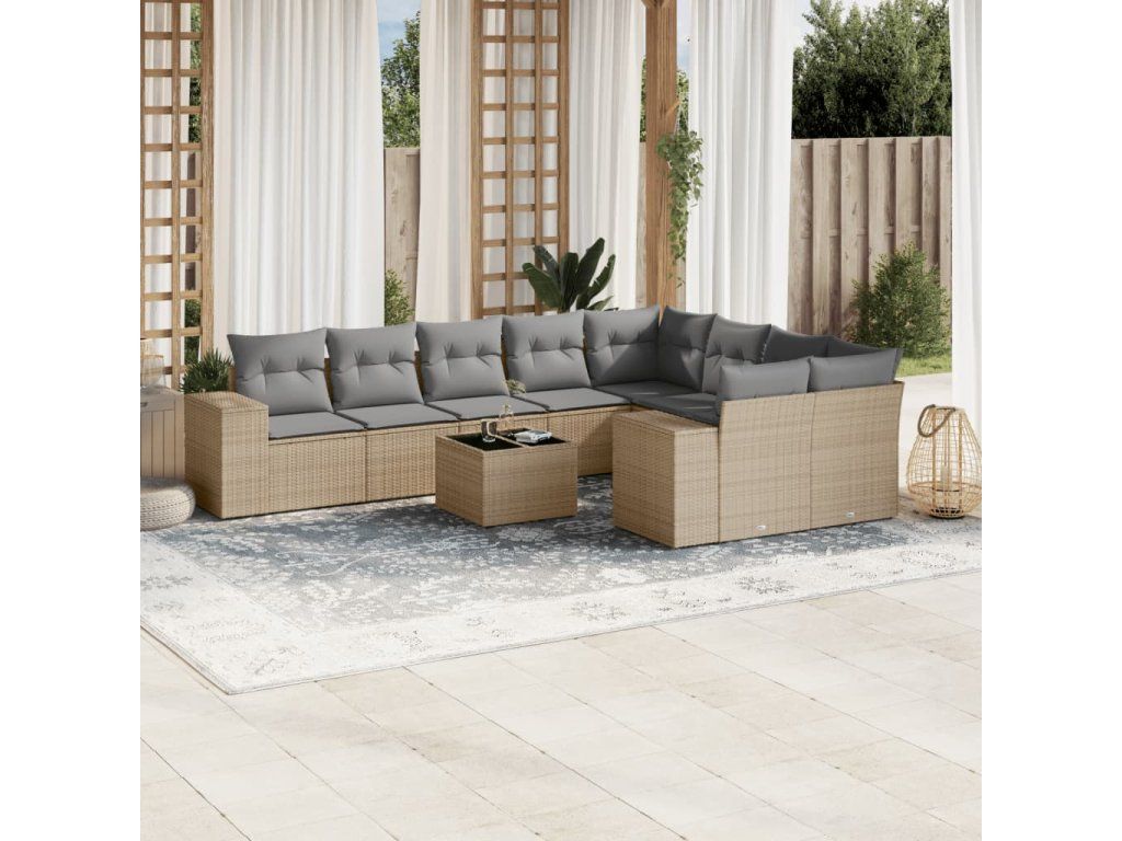 10dílná zahradní sedací souprava s poduškami béžová polyratan 3223048