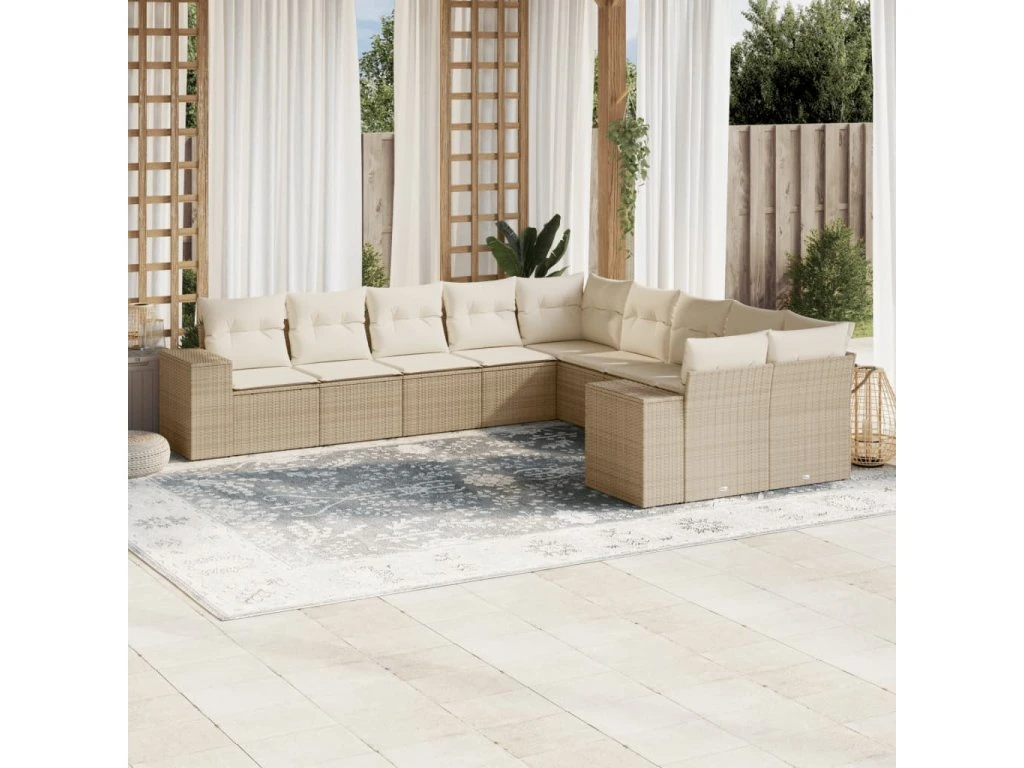 10dílná zahradní sedací souprava s poduškami béžová polyratan 3223107