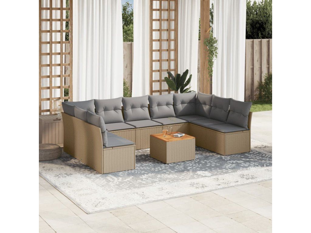 10dílná zahradní sedací souprava s poduškami béžová polyratan 3223791