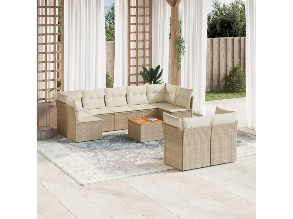 10dílná zahradní sedací souprava s poduškami béžová polyratan 3223811