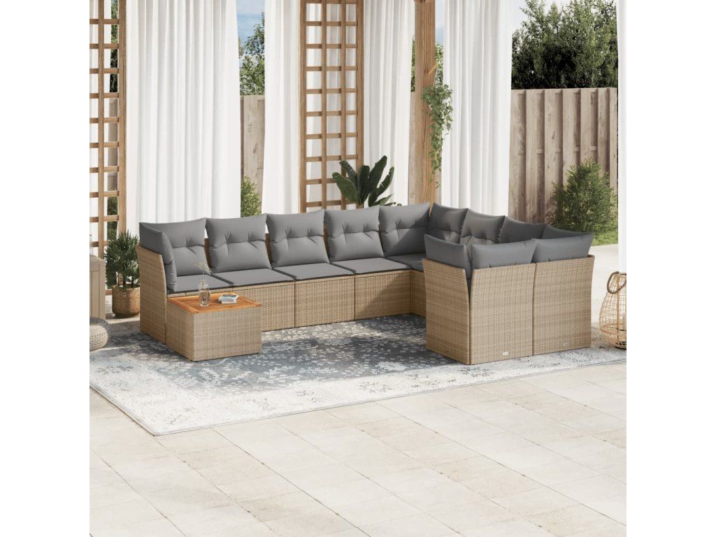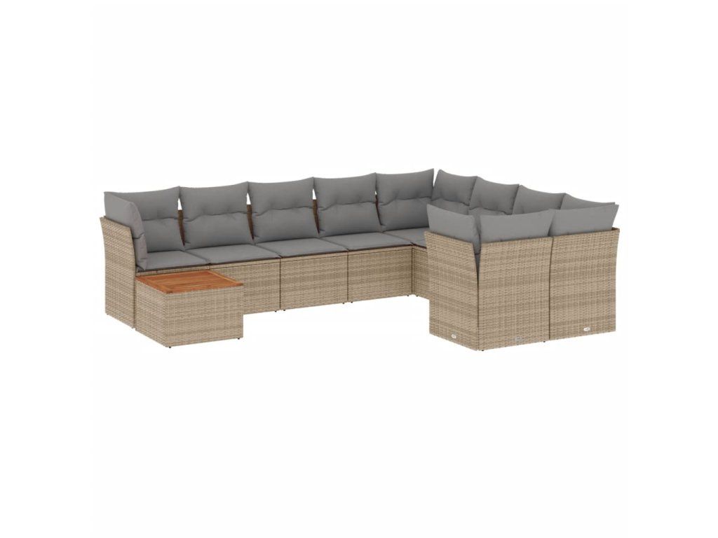 10dílná zahradní sedací souprava s poduškami béžová polyratan 3223826