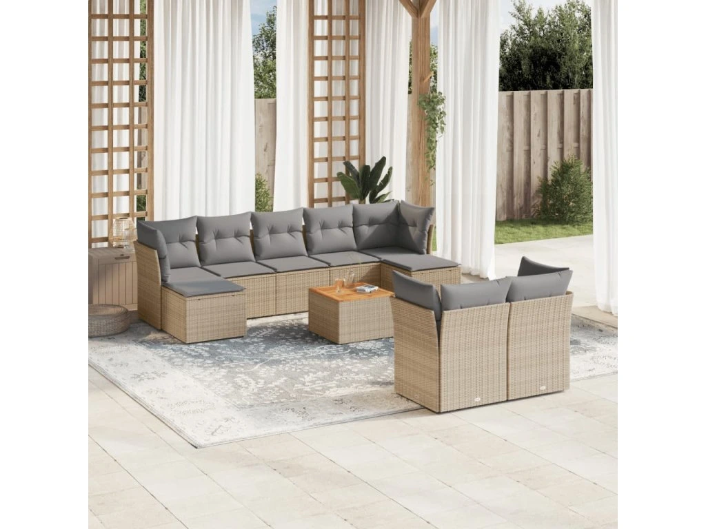 10dílná zahradní sedací souprava s poduškami béžová polyratan 3223875