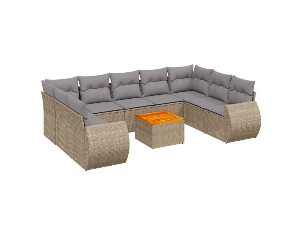 10dílná zahradní sedací souprava s poduškami béžová polyratan 3225149