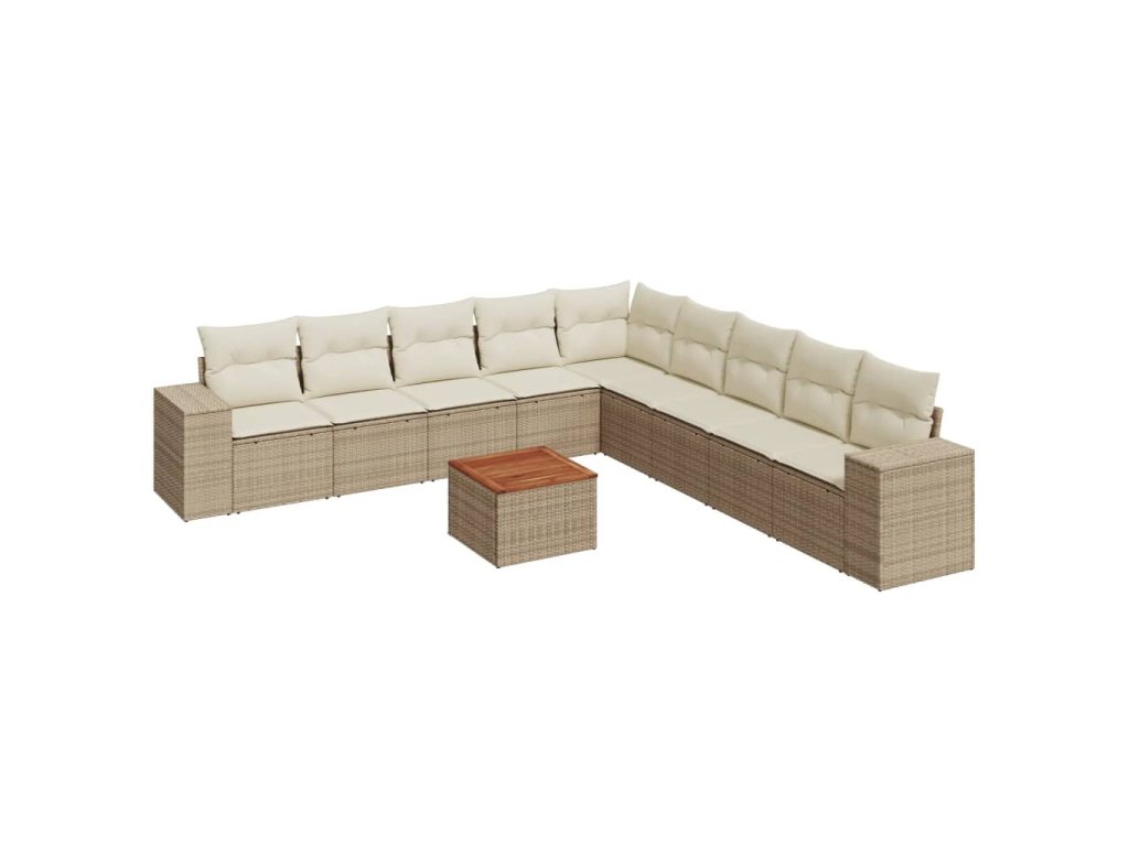 10dílná zahradní sedací souprava s poduškami béžová polyratan 3225491