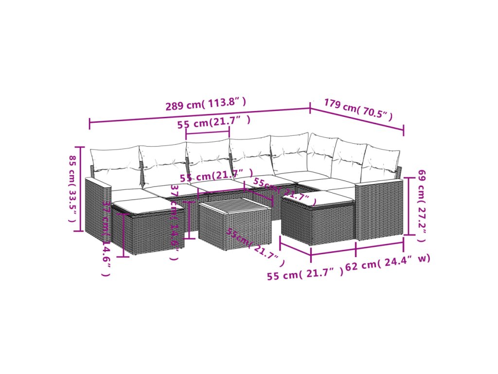 Tato zahradní sedací souprava je dokonalým doplňkem vaší zahrady, terasy nebo dvorku a poskytne vám pohodlné a příjemné místo, kde si můžete povídat s rodinou a přáteli nebo jen tak odpočívat a užívat si pobyt venku.