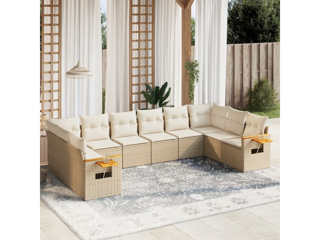 10dílná zahradní sedací souprava s poduškami béžová polyratan 3227164