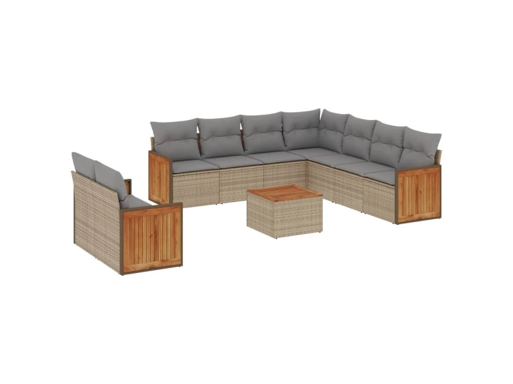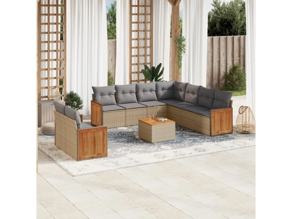 10dílná zahradní sedací souprava s poduškami béžová polyratan 3227788