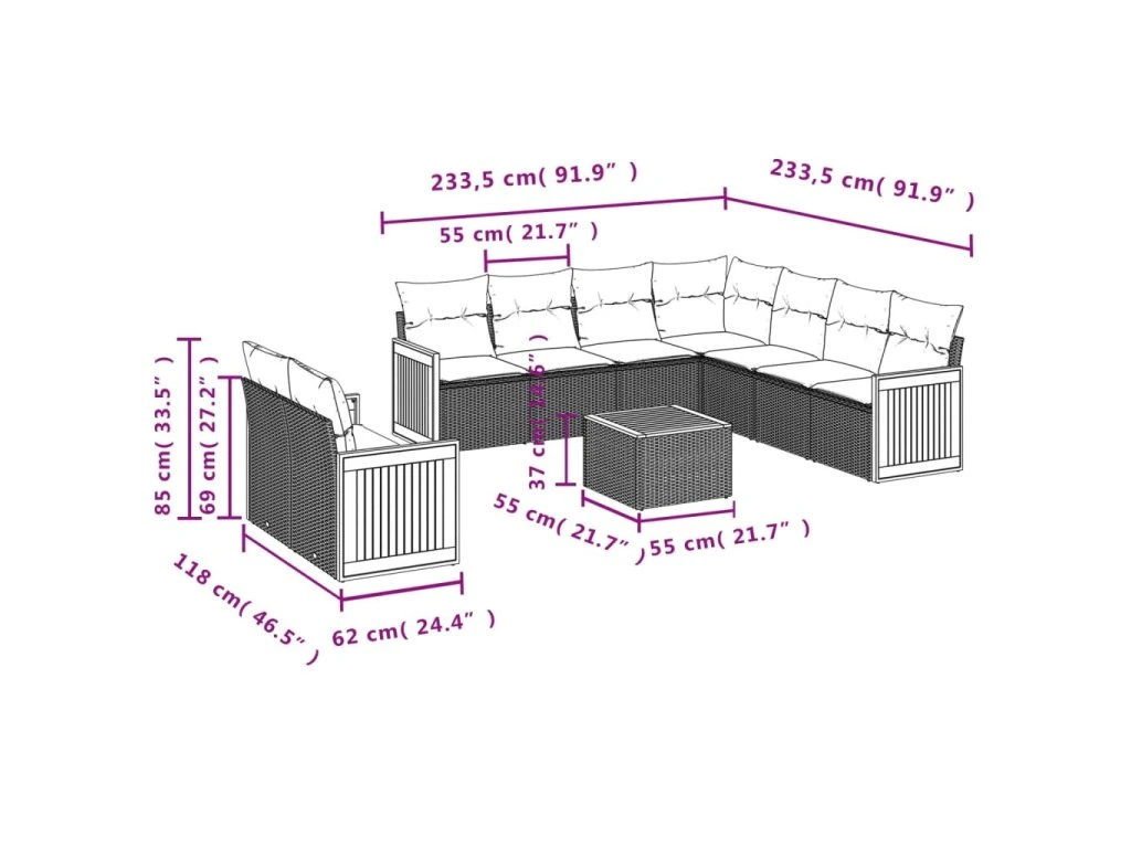 Tato zahradní sedací souprava je dokonalým doplňkem vaší zahrady, terasy nebo dvorku a poskytne vám pohodlné a příjemné místo, kde si můžete povídat s rodinou a přáteli nebo jen tak odpočívat a užívat si pobyt venku.