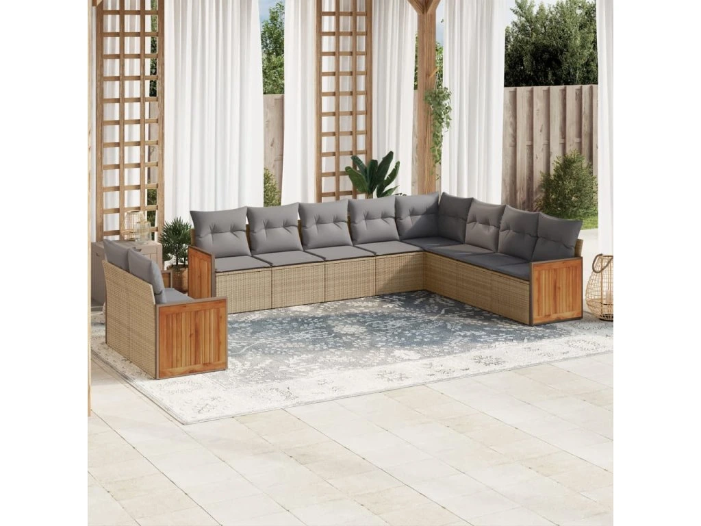 10dílná zahradní sedací souprava s poduškami béžová polyratan 3227795