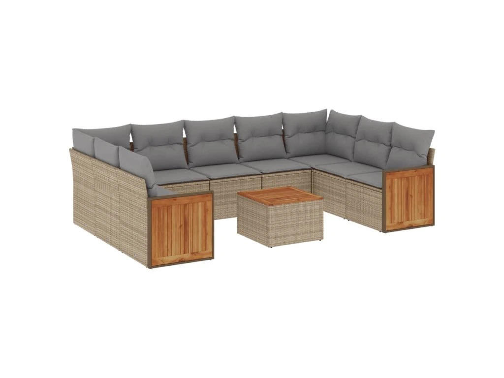 10dílná zahradní sedací souprava s poduškami béžová polyratan 3227963